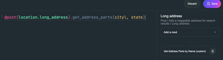 Purpose: This modifier lets you extract specific parts (like just the City and State, or only the ZIP code) from a full address field. It's useful for displaying addresses consistently in different formats across the site.