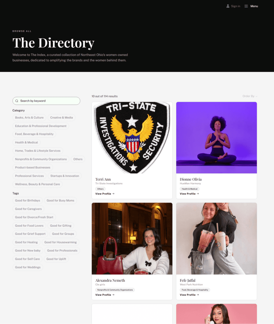 This platform serves as a curated marketplace for discovering and supporting women-owned businesses across Northeast Ohio.