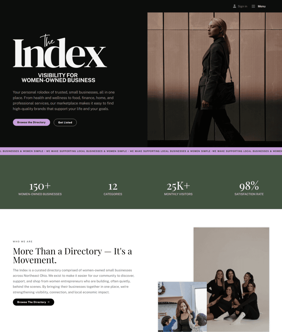 I designed and developed a fully functional business directory website for a women-focused brand called “The Index.”